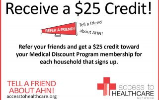 Current AHN members will receive $25 off their monthly membership fee for EVERY household they refer to AHN during the month of December! REFER-A-FRIEND PROGRAM STEP-BY-STEP: 1)1. Refer—have a friend call 877.385.2345 to